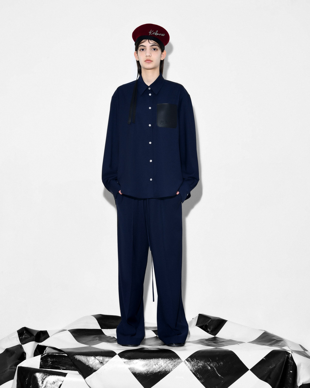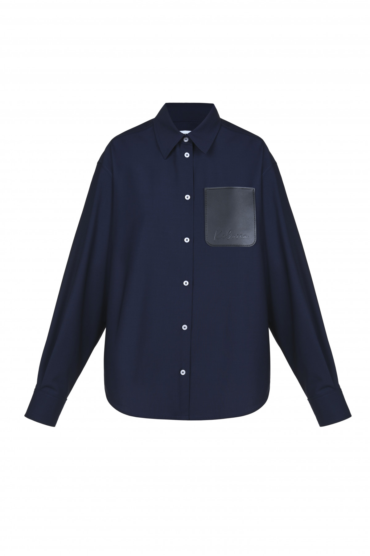 From the FW25 collection, this relaxed-fit shirt is designed from lightweight wool-blend fabric. The minimalist silhouette features a sharp collar, contrasting white buttons, and a signature logo embossed leather patch pocket. Its elongated hem and dropped shoulders offer an effortlessly modern look that pairs seamlessly with tailored or casual pieces.