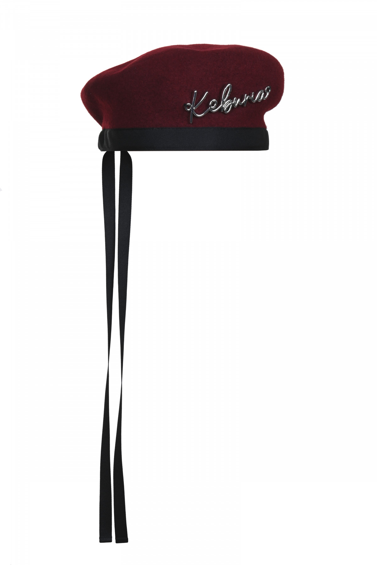 From the FW25 Collection, this wool beret reflects KEBURIA’s signature blend of romantic discipline and sculptural minimalism. Crafted from soft felted wool, it is adorned with a silver-tone metal “KEBURIA” plaque and finished with long black ribbon ties.