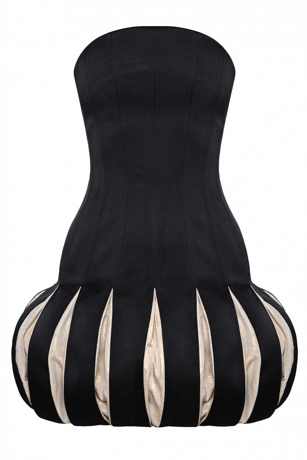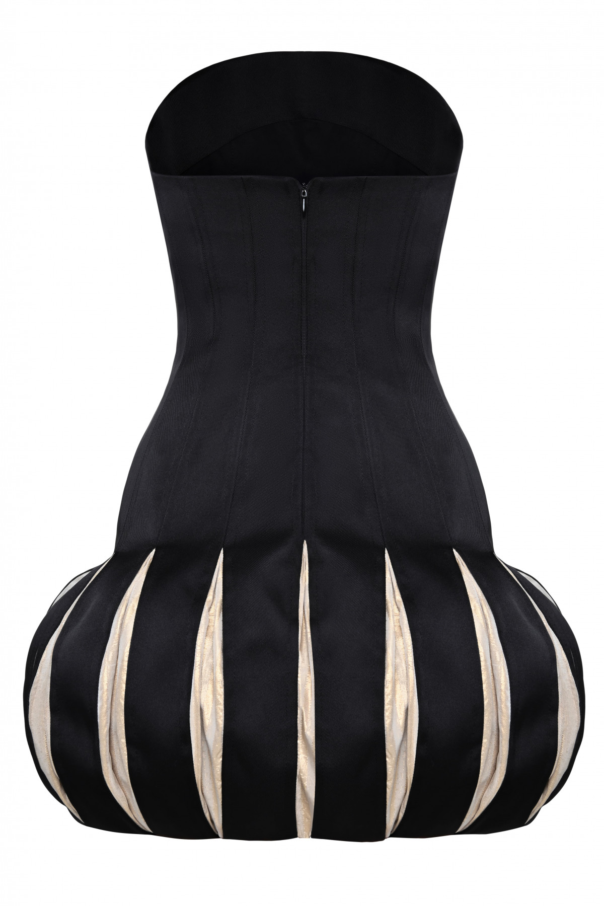 from the Spring/Summer 2026 Collection, the Corset Bubble Dress is designed with a fitted corset bodice and a voluminous bubble skirt. The structured upper contrasts with the sculpted lower shape, creating a bold and balanced silhouette.