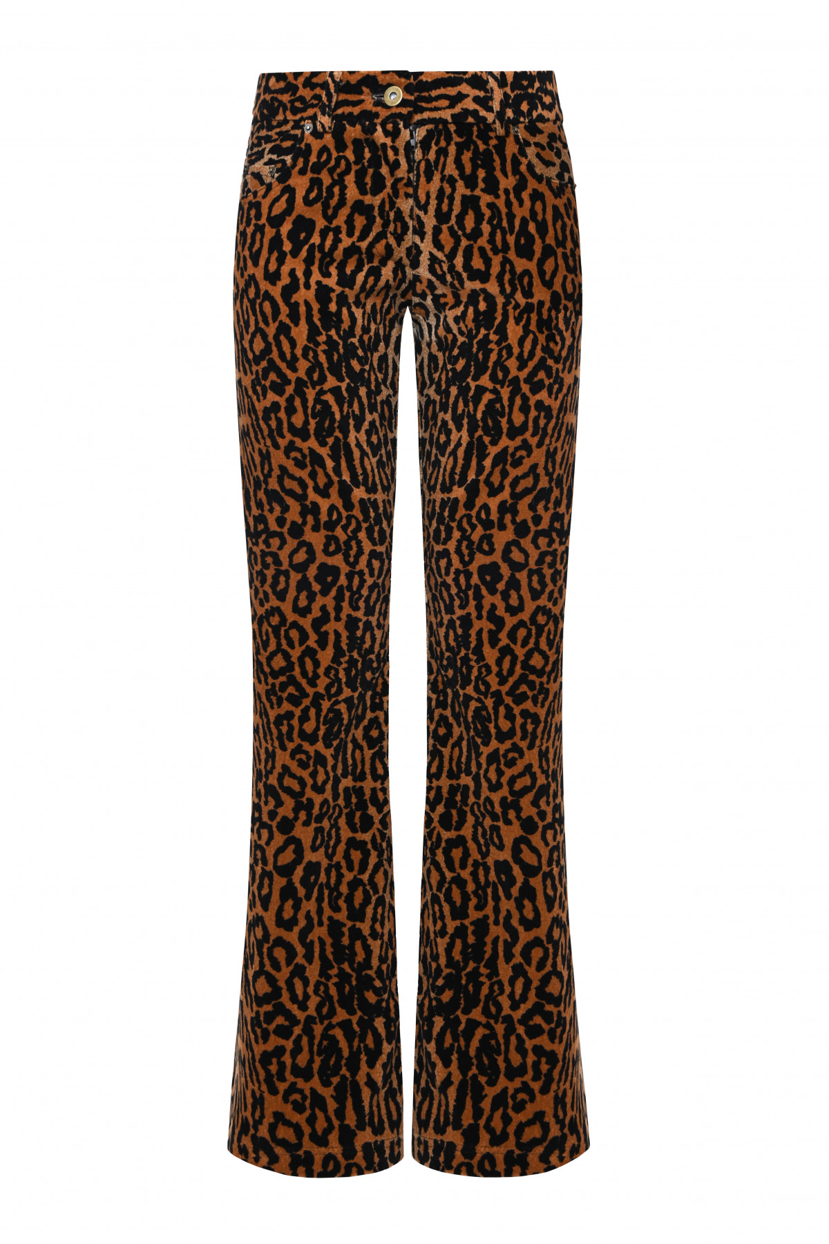 From the SS26 Collection, these leopard velvet pants feature a bold brown and black print with a sleek, elongated silhouette. The mid-rise design and slightly flared leg create a flattering shape, while the textured velvet fabric adds depth and a statement finish.